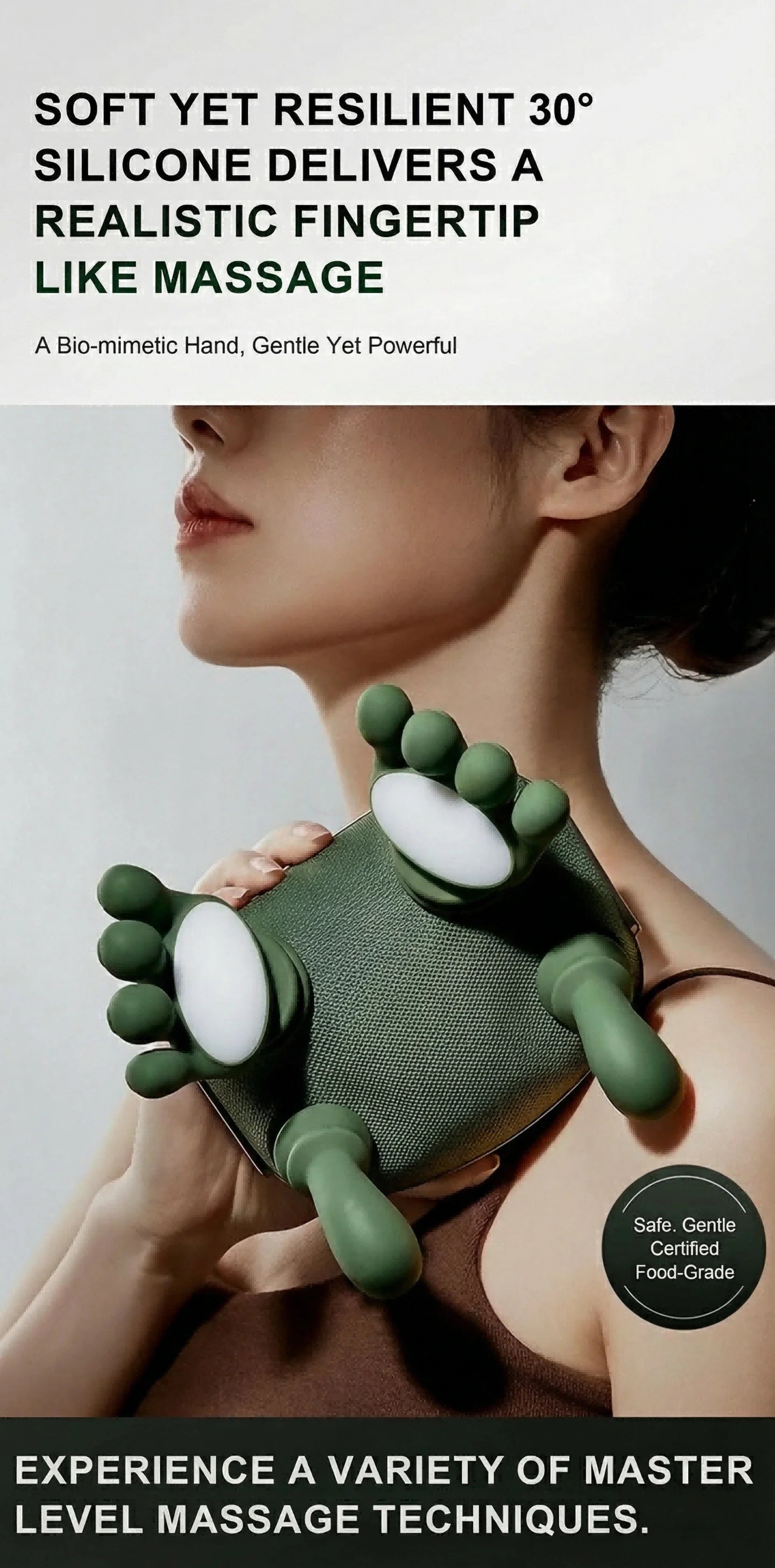 with a hands-free, finger-kneading massage.